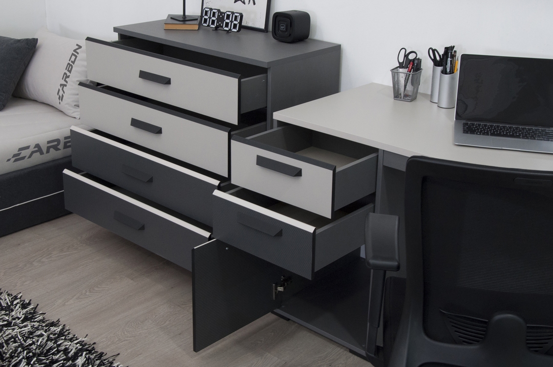 Стильная, современная и продуманная до мелочей — коллекция «КАРБОН» создана для подростков, которые ценят комфорт и самовыражение. Трендовые сочетания цветов и фактур делают интерьер ярким и запоминающимся, а комнату — по-настоящему «своей».