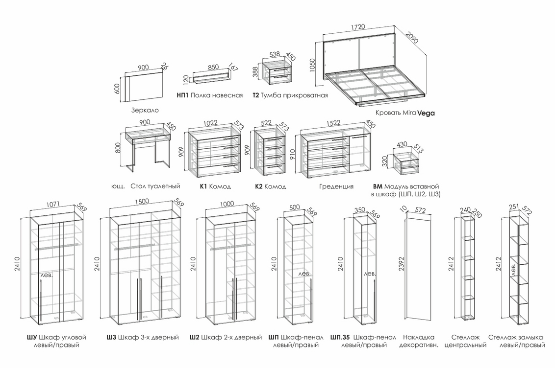 Внимание! Распределительная нагрузка на навесные полки не должна превышать — 10 кг. Настоятельно не рекомендуем крепить навесные модули к гипсокартонным стенам. Данные модули могут быть закреплены на перегородки из кирпича или бетона.